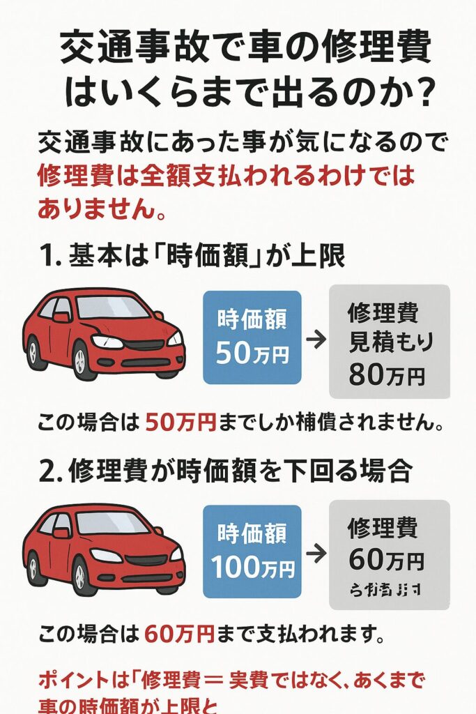 👉 ポイントは「修理費=実費ではなく、あくまで車の時価額が上限」ということです。